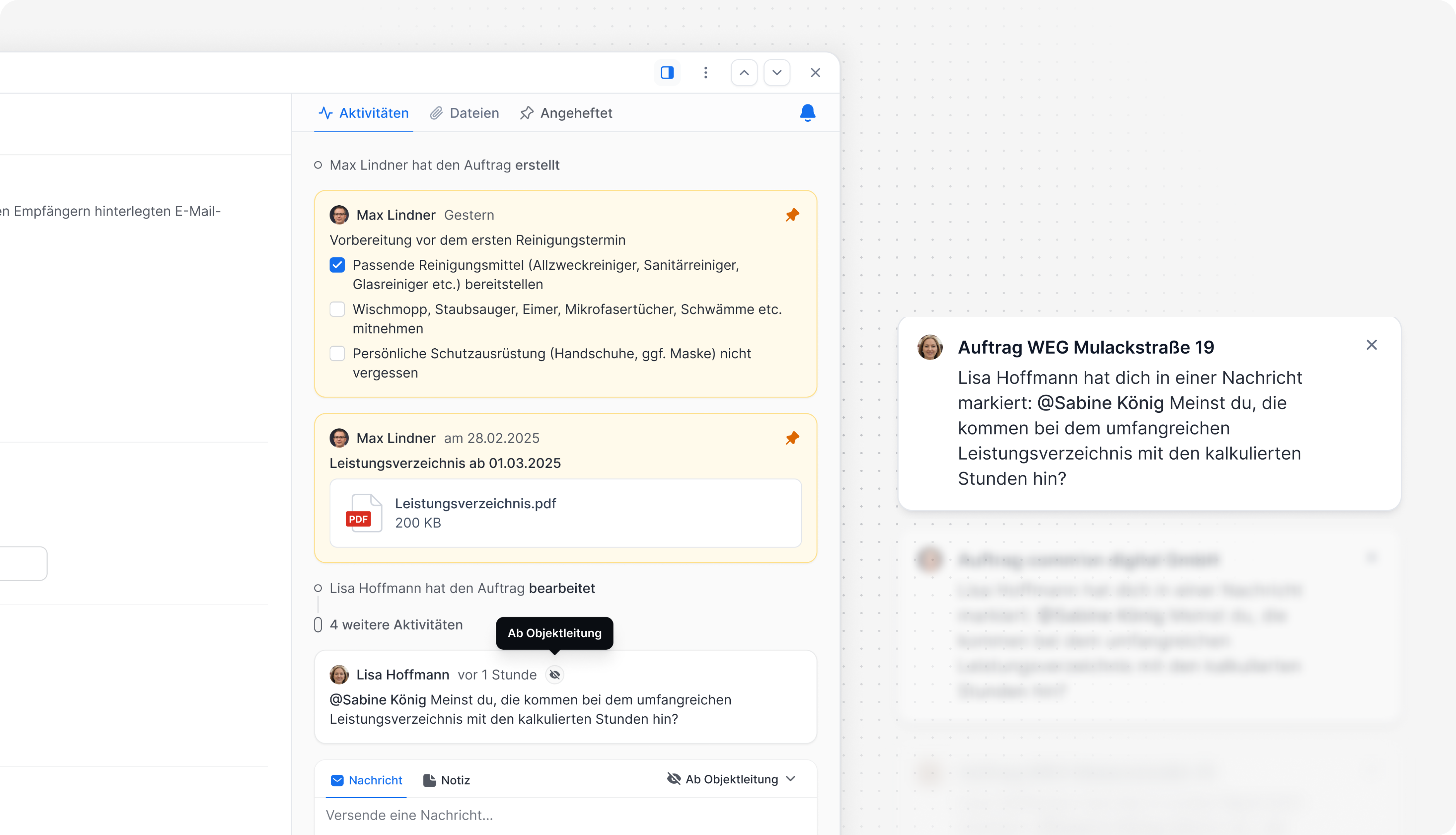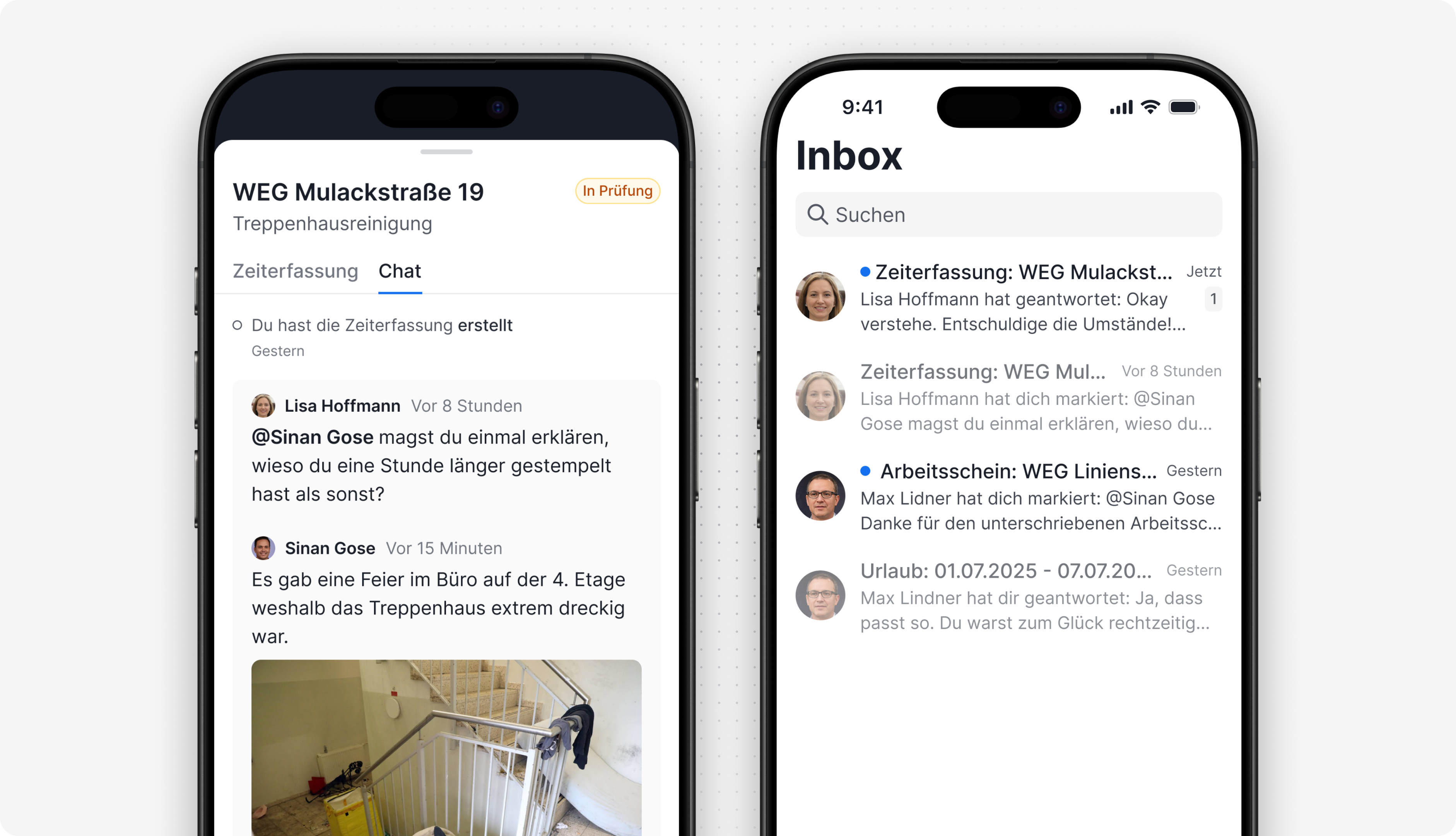 Communicating with teammates in the dashboard is practical – but what if you could do the same on the go? With the new Inbox and Mobile Logbook, you now have a central overview of all notifications and can communicate contextually with all employees at any time.