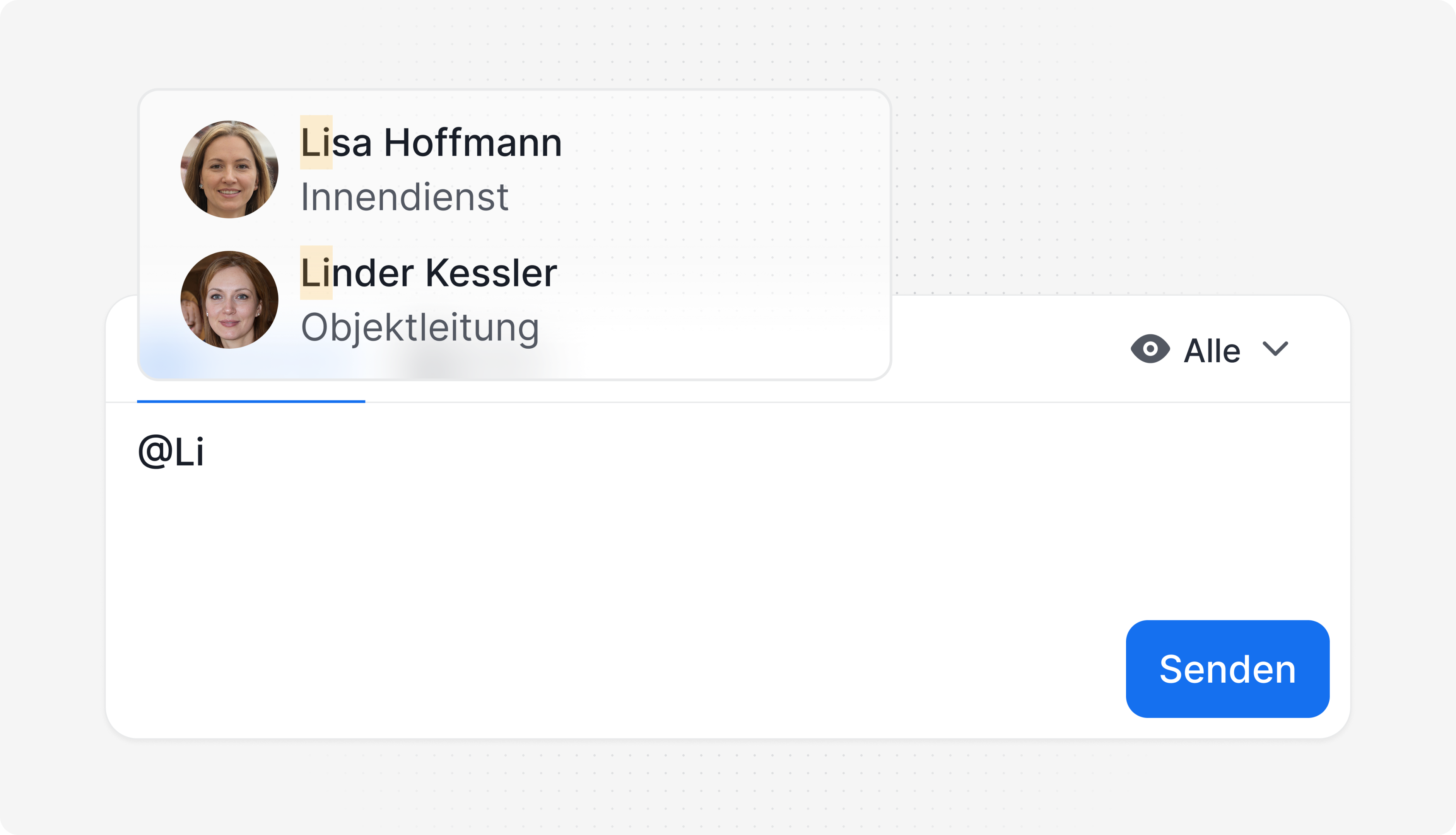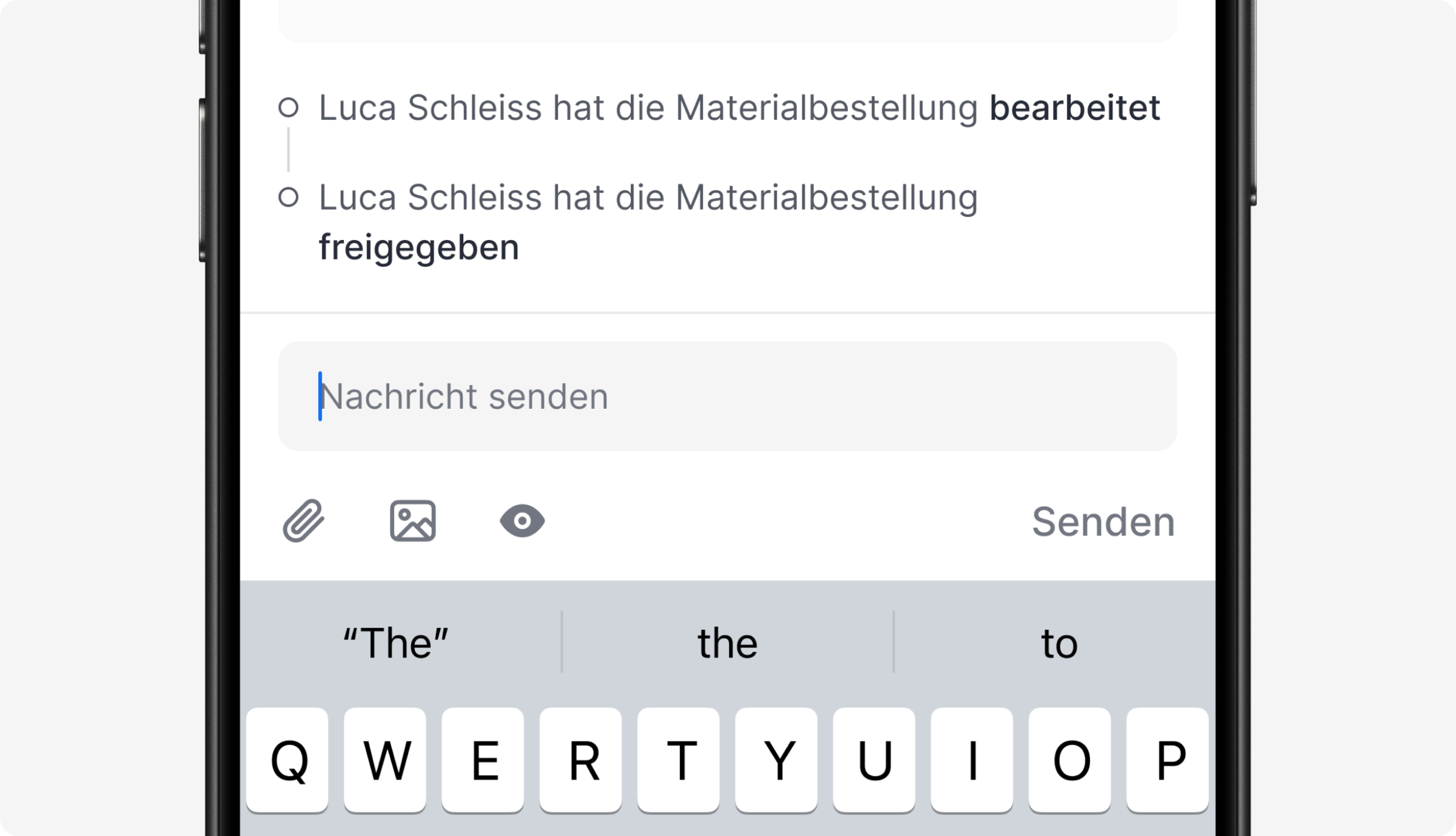 The logbook is now also available on mobile – just like in the dashboard! Stay informed at all times and communicate directly in the right context, whether for absences, assignments, tickets, or other processes in the app. Open the respective logbook easily via a notification or the "Chat" tab in a record.